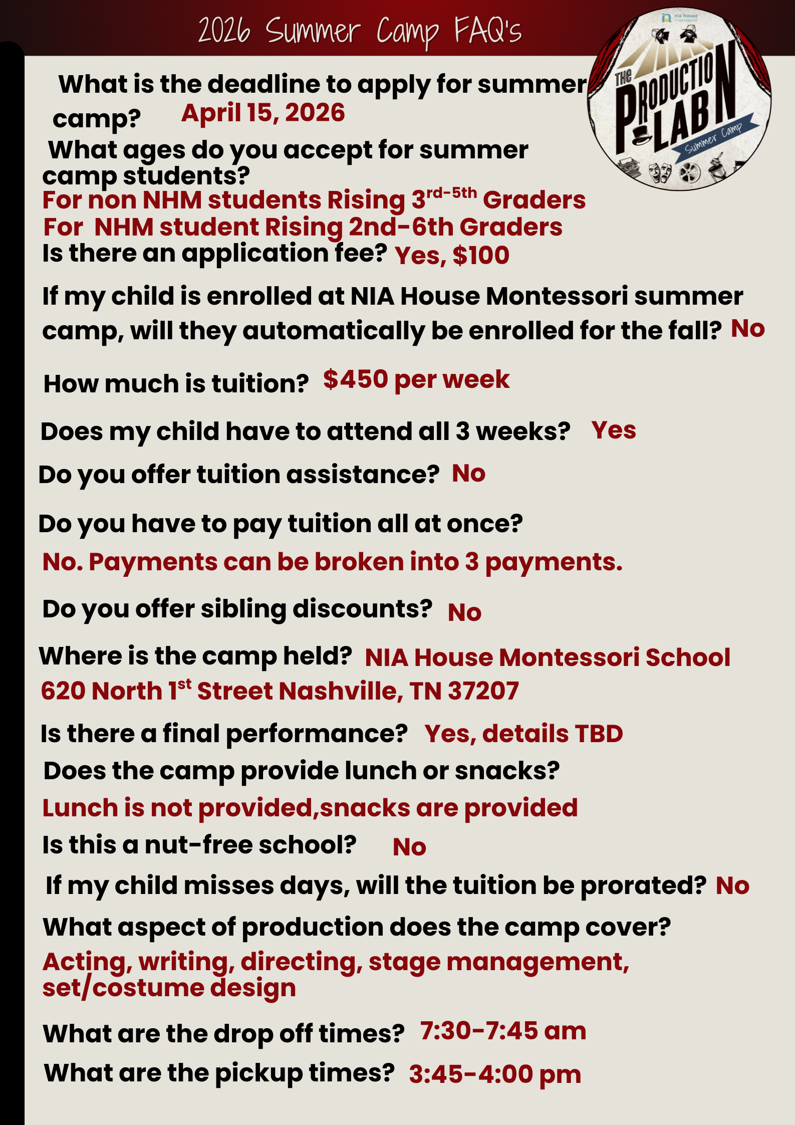 The deadline to apply for The Production Lab Summer Camp is April 15, 2026